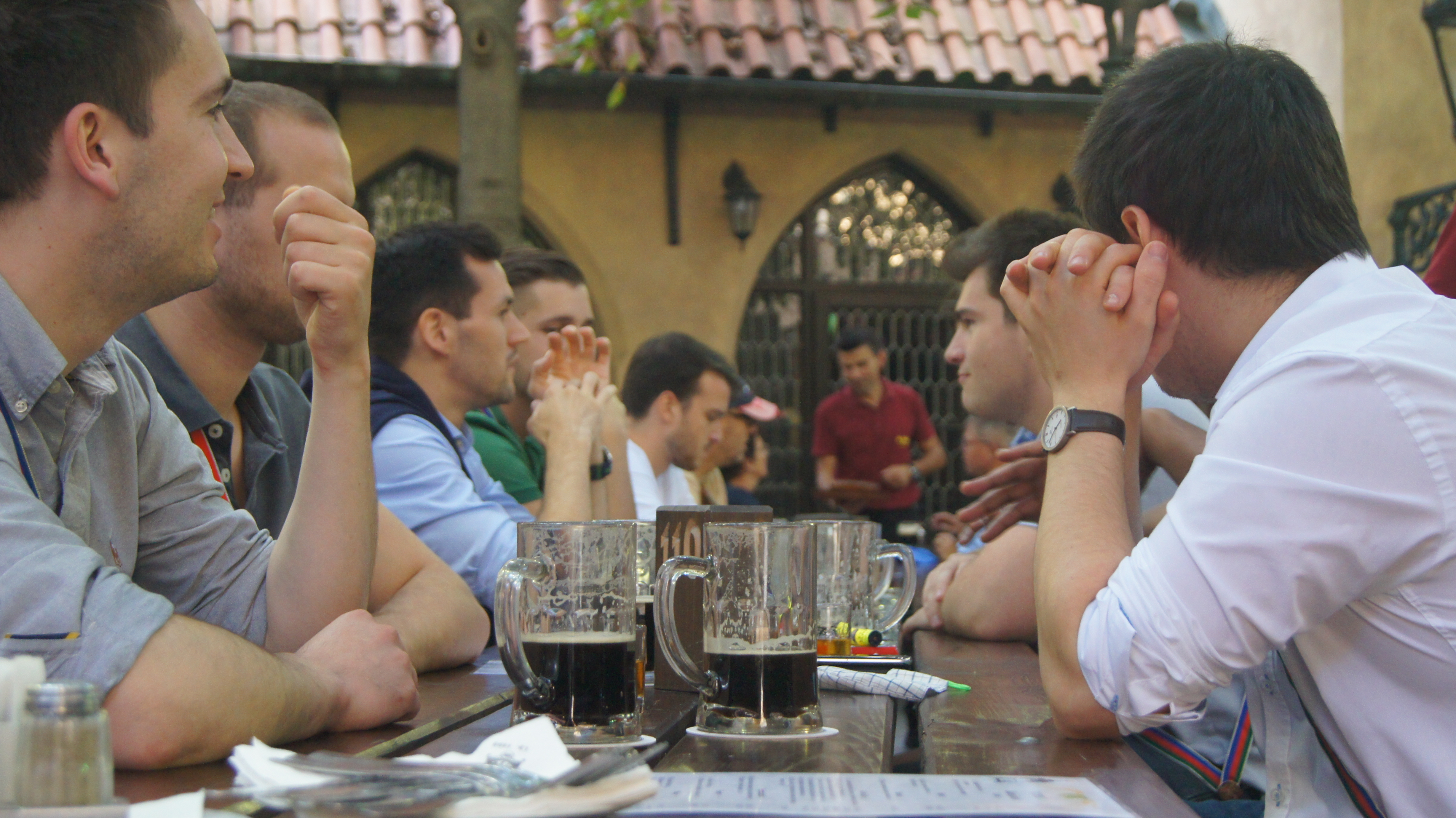Ein weiterer Höhepunkt war der Besuch der Staropramen-Brauerei. Nach einer spannenden Führung durch Sudhaus und Geschichte der Braukunst stand die Verkostung an – vier Sorten, die uns bestens schmeckten. Und weil es noch nicht genug war, folgte Teil zwei des „Duells um Prag“, das den Gastraum kurzerhand in einen Hexenkessel verwandelte.
