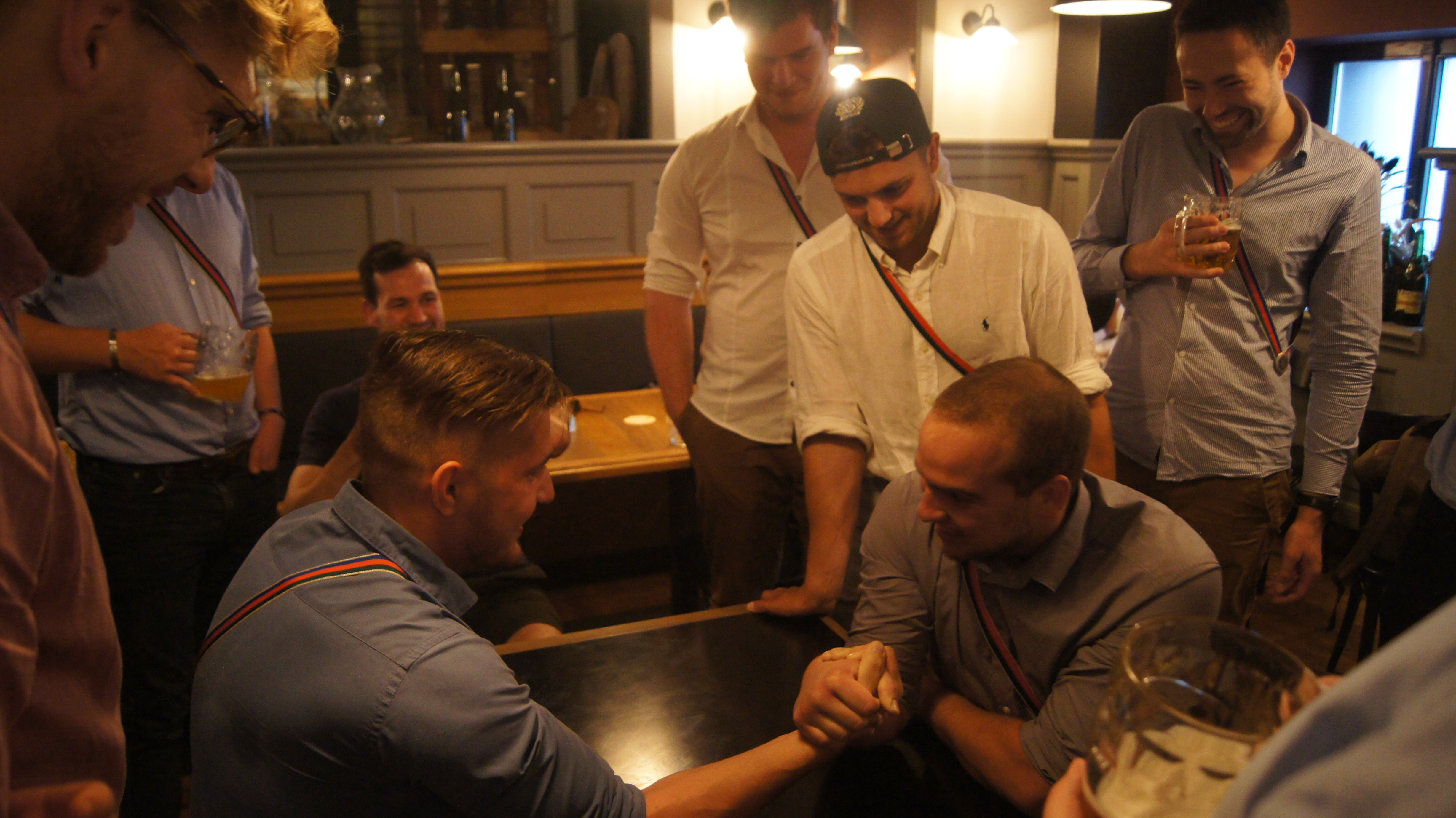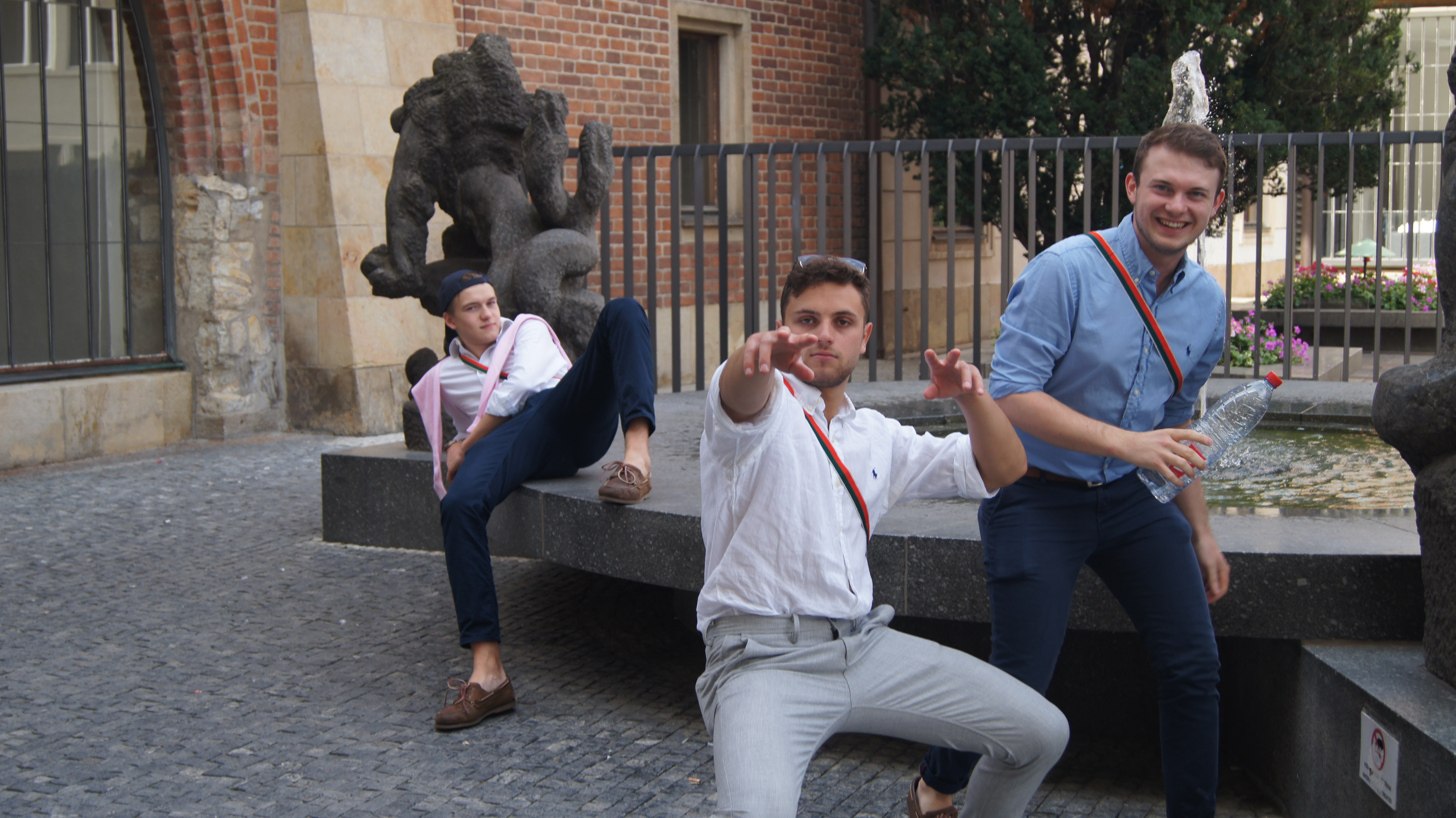 Am nächsten Tag standen ein Besuch der Deutschen Botschaft und eine Führung durch die Kleinseite mit Prager Burg, Veitsdom und Karlsbrücke auf dem Plan. Zwischen historischen Eindrücken und lockeren Anekdoten unserer Führerin blieb genug Raum für Schabernack und spontane Fotomomente. Natürlich durfte auch das Feiern nicht fehlen. Abends zogen wir durch die Altstadt, ließen uns in Kellerkneipen nieder und lieferten uns beim „Duell um Prag“ ein legendäres Kräftemessen zwischen Aktiven und Alten Herren. Spiele, Wettkämpfe und jede Menge Gelächter machten daraus ein echtes Highlight.